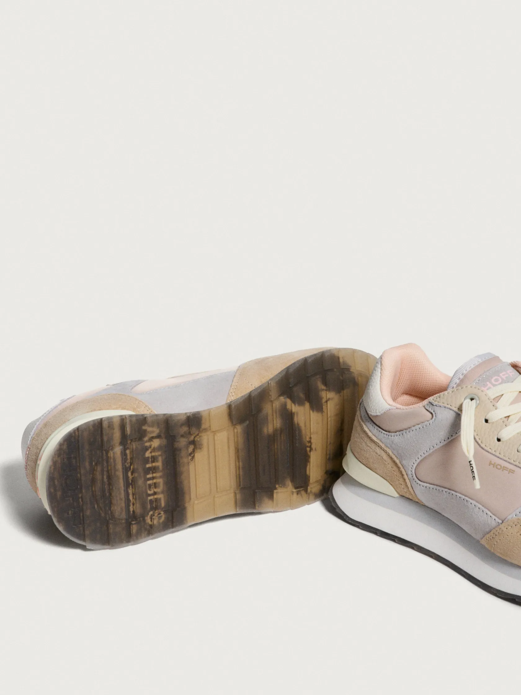 Con un diseño inspirado en la ciudad de ANTIBES. Estas deportivas son la combinación perfecta gracias a su gama en tonos nude, palo rosa, caqui y gris. La mezcla de materiales como el ante, tejido y la goma en contraste las convierte en una pieza versátil, con un diseño insignia para tus looks. Tienen efecto acolchado en la parte frontal del tejido a tono y una dosis de comodidad gracias a la plantilla memory foam. No te pierdas la esencia de cada zapatilla en la suela y eleva tu streetwear.