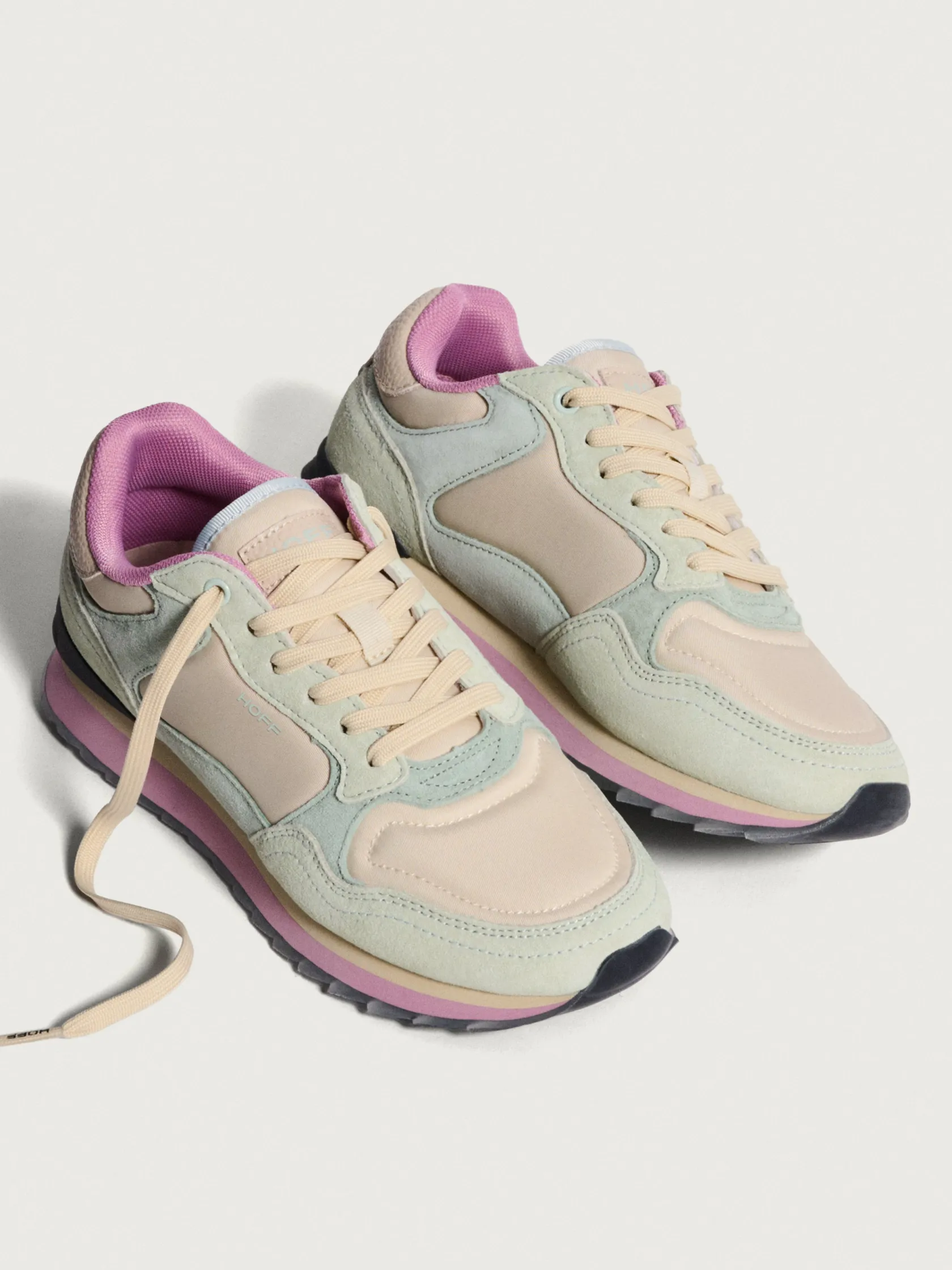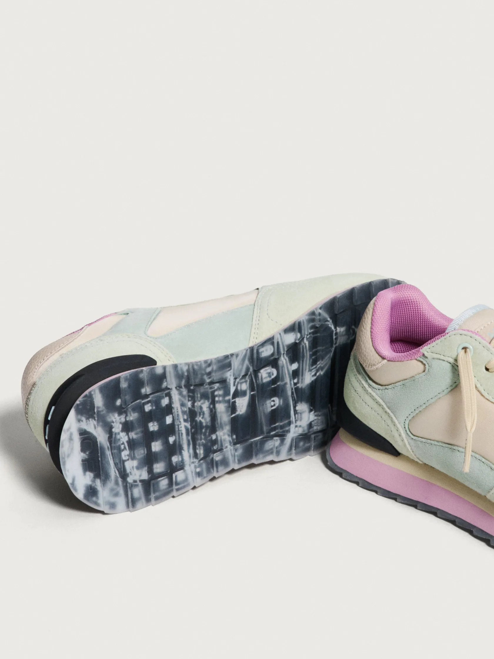 Las zapatillas Salzburg son auténticas. Con tonos aguamarina, crema y detalles en negro, estas zapatillas destacan por su originalidad. La combinación de cuero y nylon ofrece una estética única, mientras que la suela con una línea rosa y crema agrega un toque de estilo distintivo. Estas zapatillas son ideales para un look urbano y moderno. Combínalas con unos vaqueros y una camisa para un estilo casual elegante.